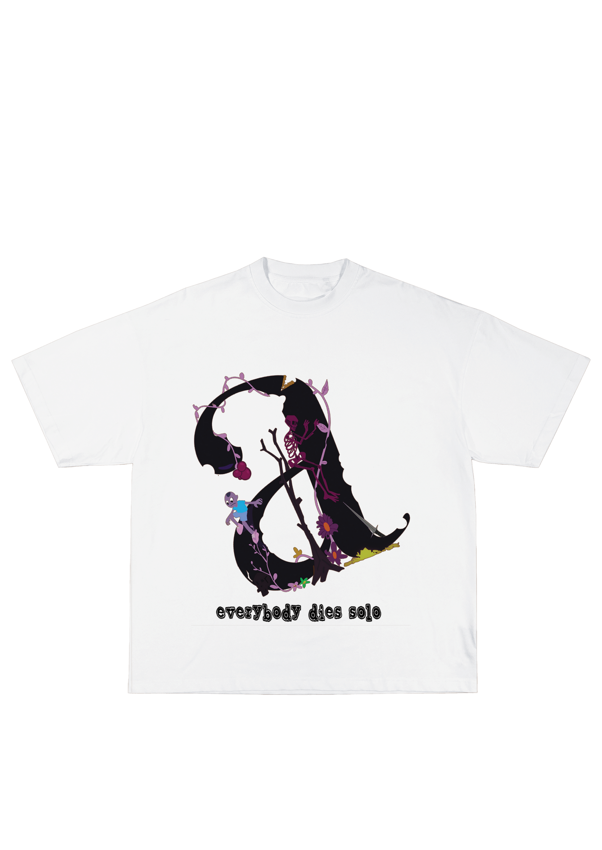 Everybody Dies Solo black t-shirt. A heavy cotton tee featuring a haunting floral symbol and a reminder of solitude, mortality, and self-reflection.
